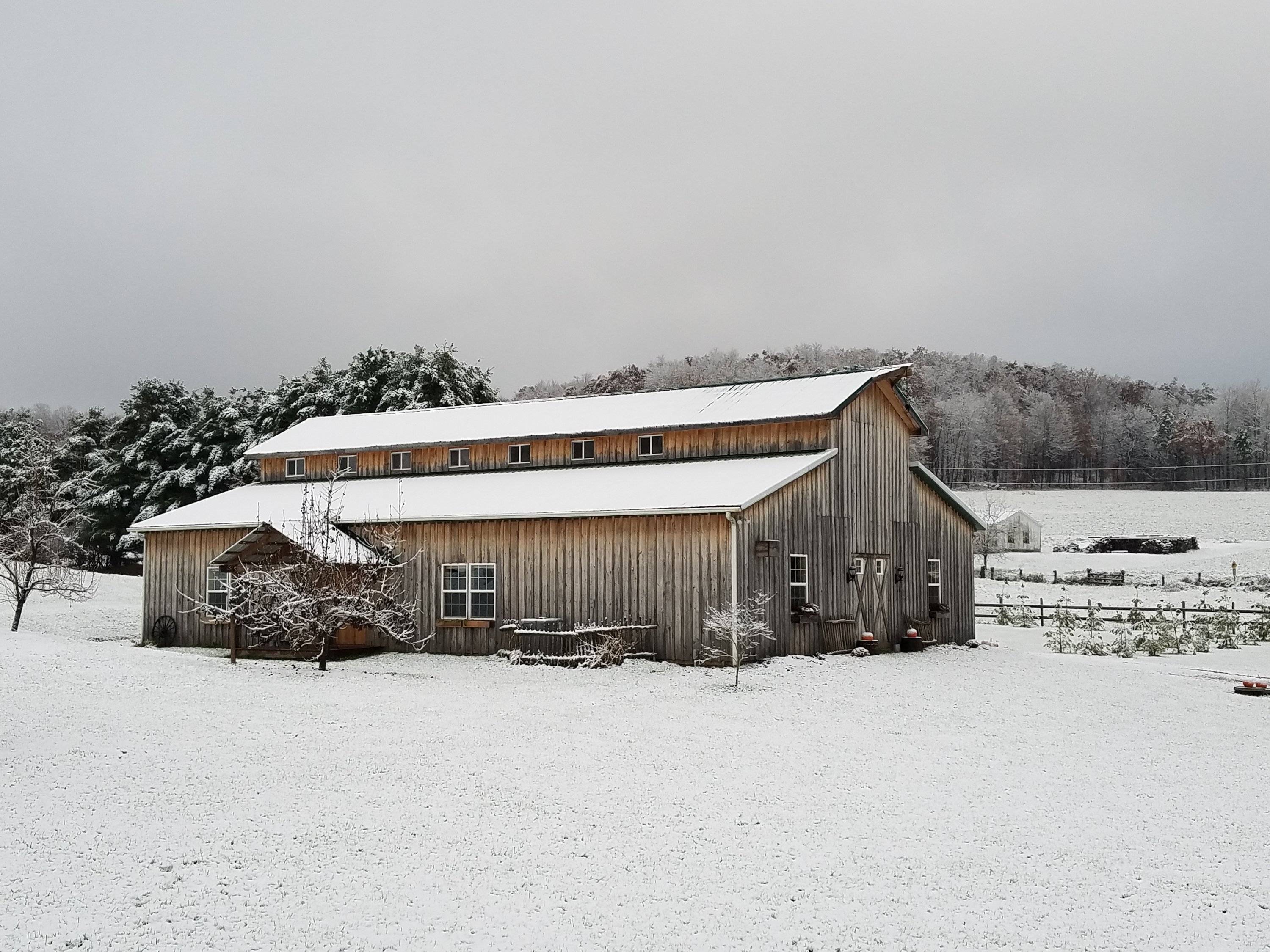 Old view of barn in winter