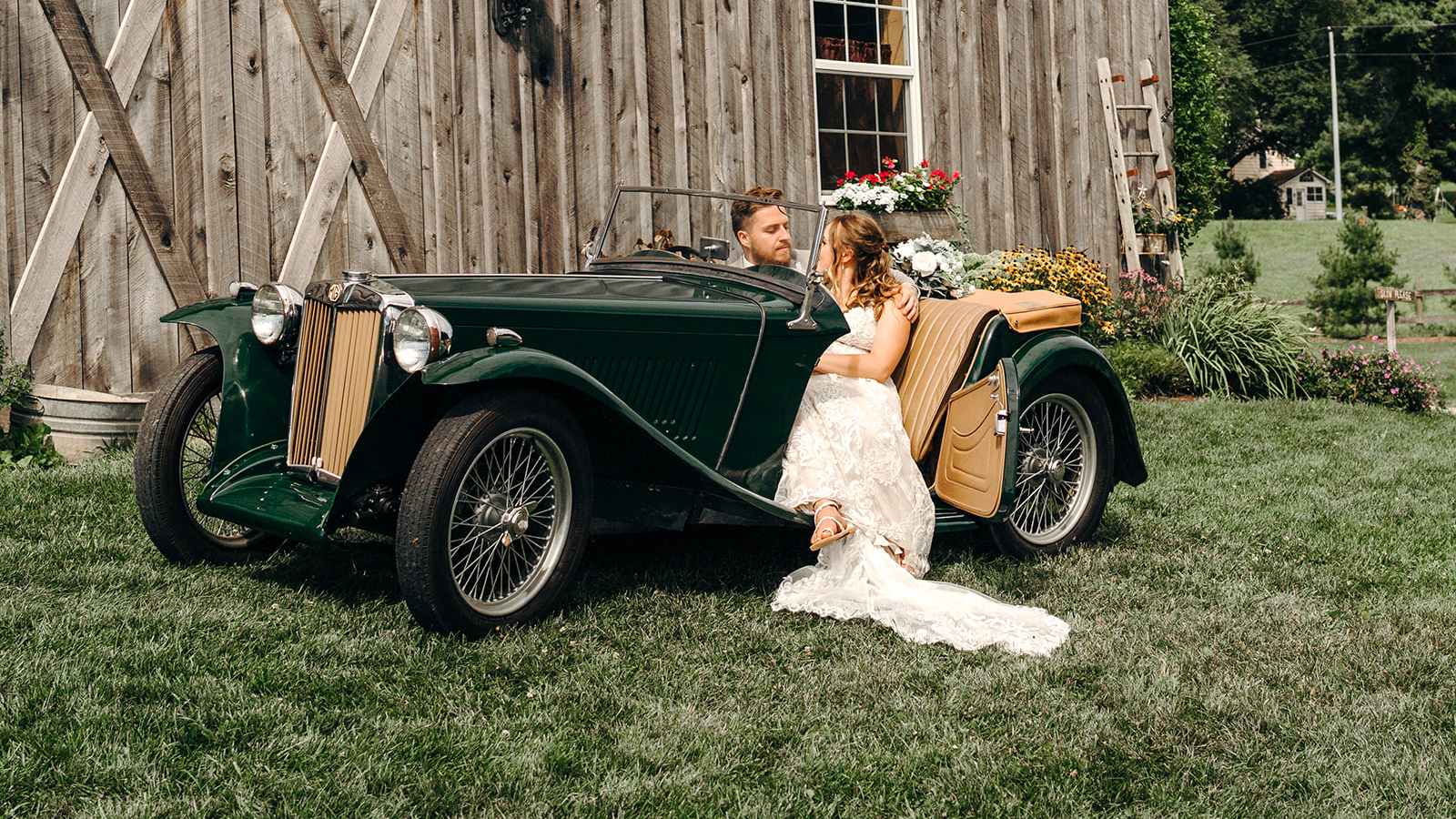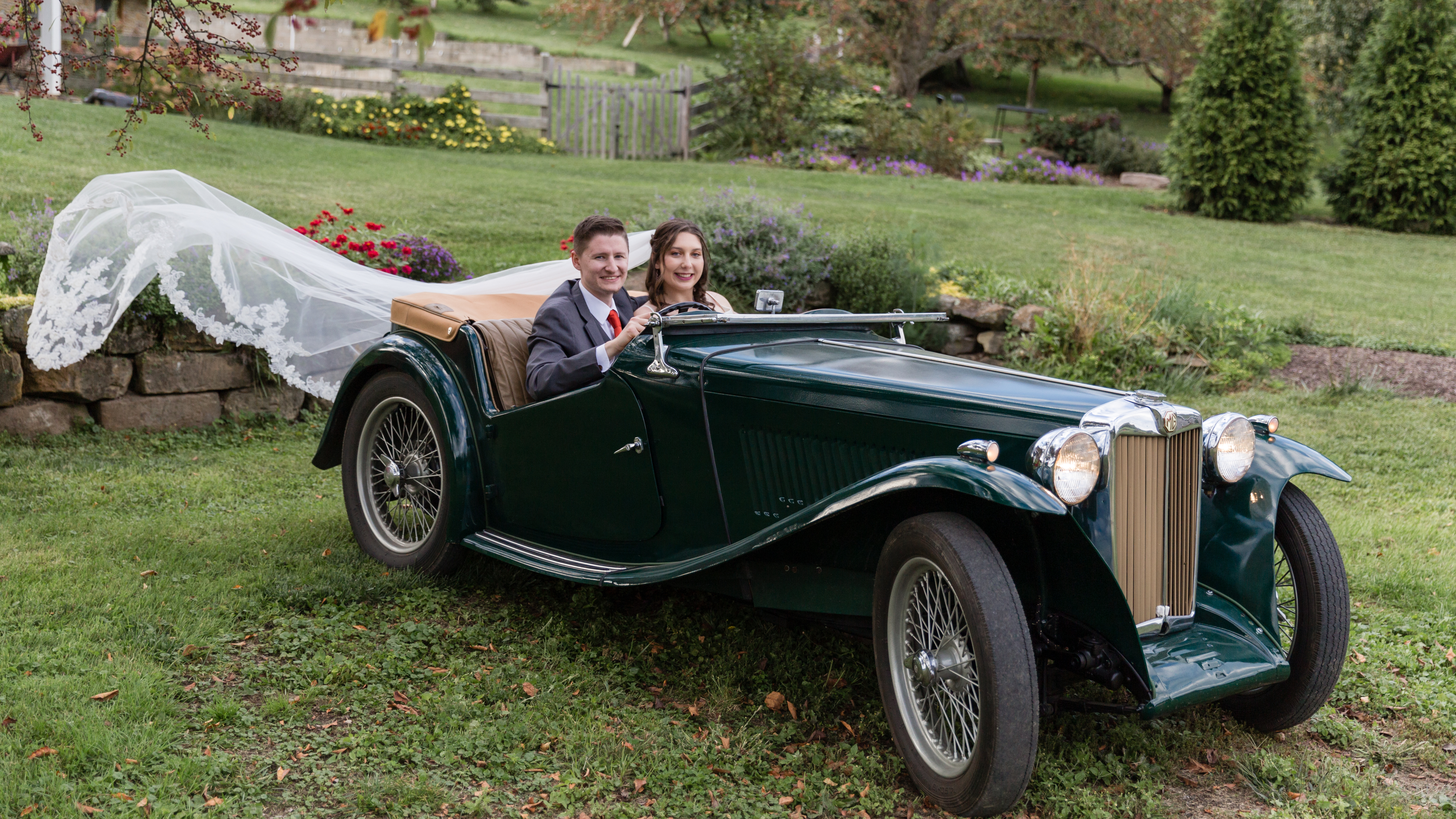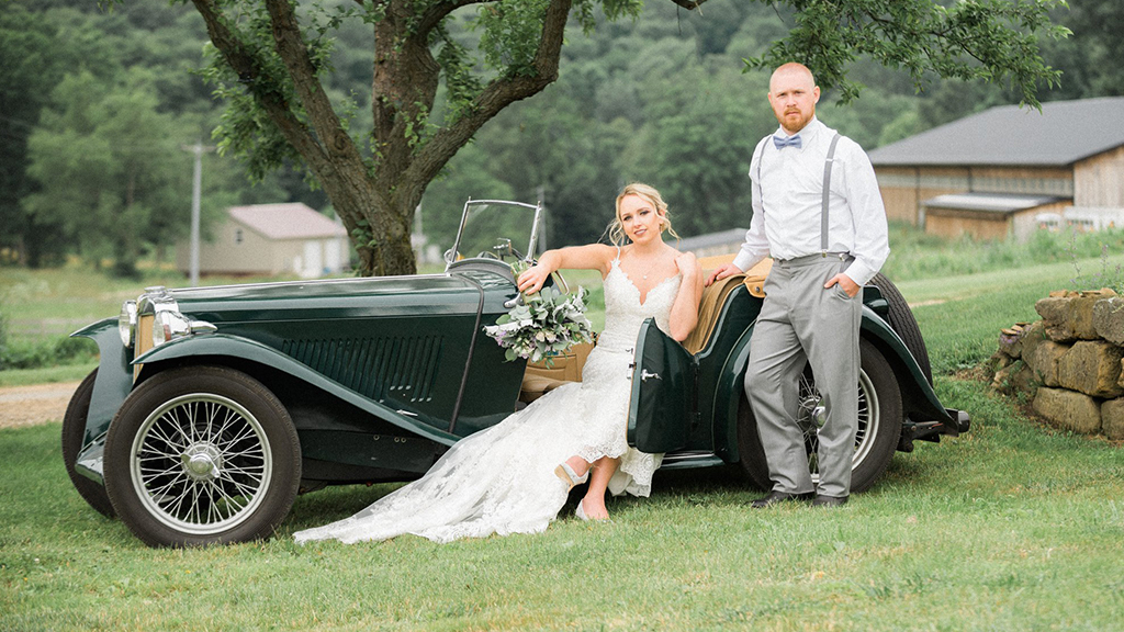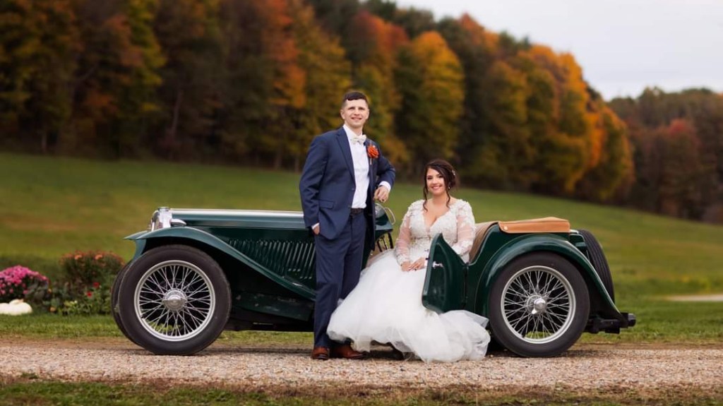 Nicknames “Emma”, our 1949 MG is a fully restored right hand drive British sports-car. The car had belonged to Dave’s father, but it sat in pieces for many years in their garage in New York. In 2014, Dave brought it to Ohio in the back of his truck and he and our boys spent a couple years restoring it. It now provides great joy for us for local excursions in nice weather, as well as a beautiful prop for some very cool wedding pictures.