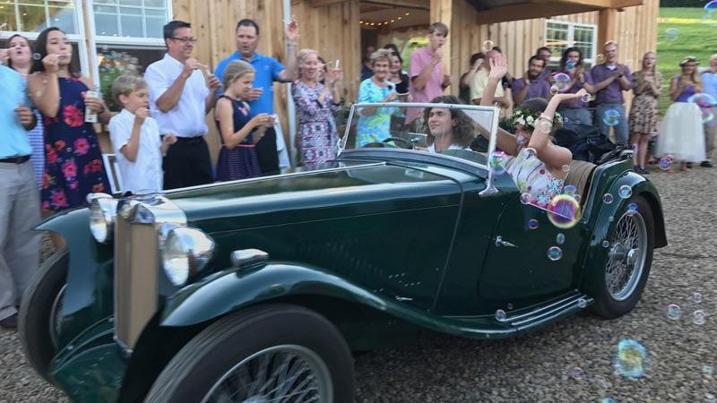 Nicknamed “Emma”, our 1949 MG is a fully restored right hand drive British sports-car. The car had belonged to Dave’s father, but it sat in pieces for many years in their garage in New York. In 2014, Dave brought it to Ohio in the back of his truck and he and our boys spent a couple years restoring it. It now provides great joy for us for local excursions in nice weather, as well as a beautiful prop for some very cool wedding pictures.