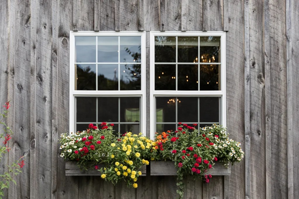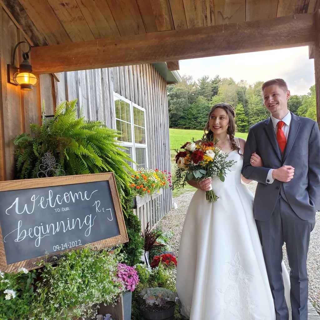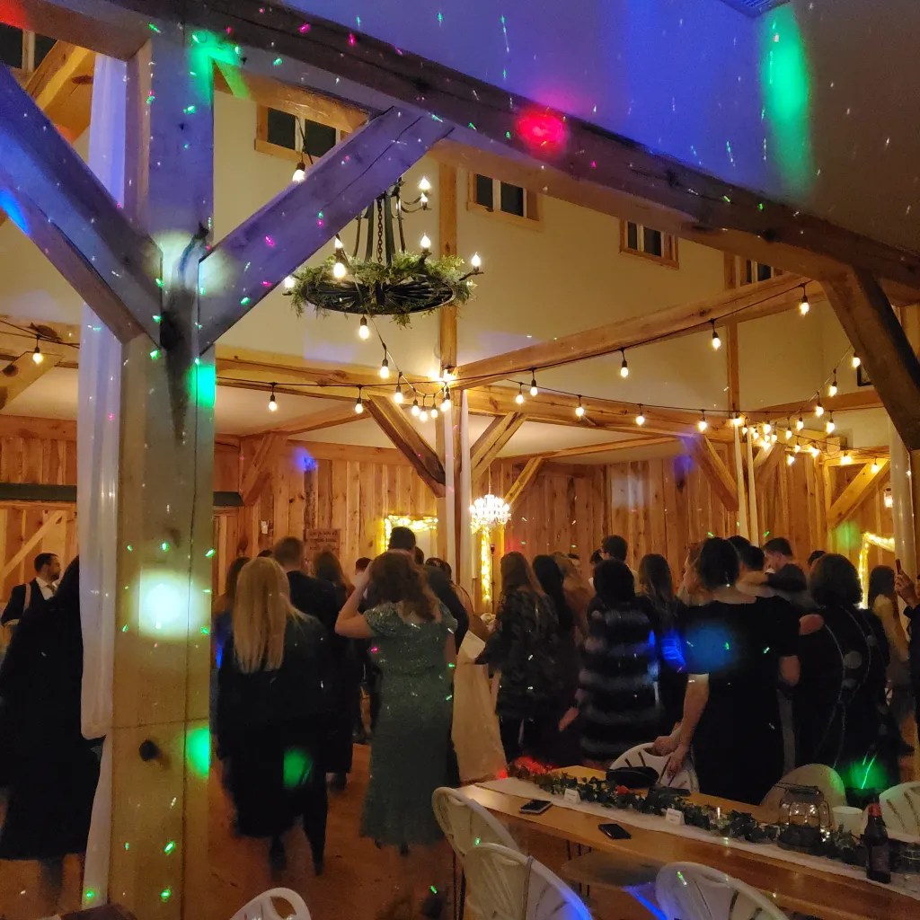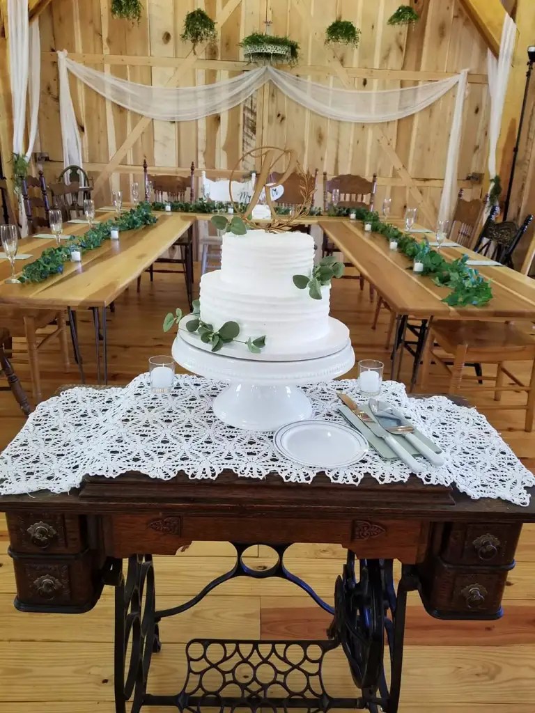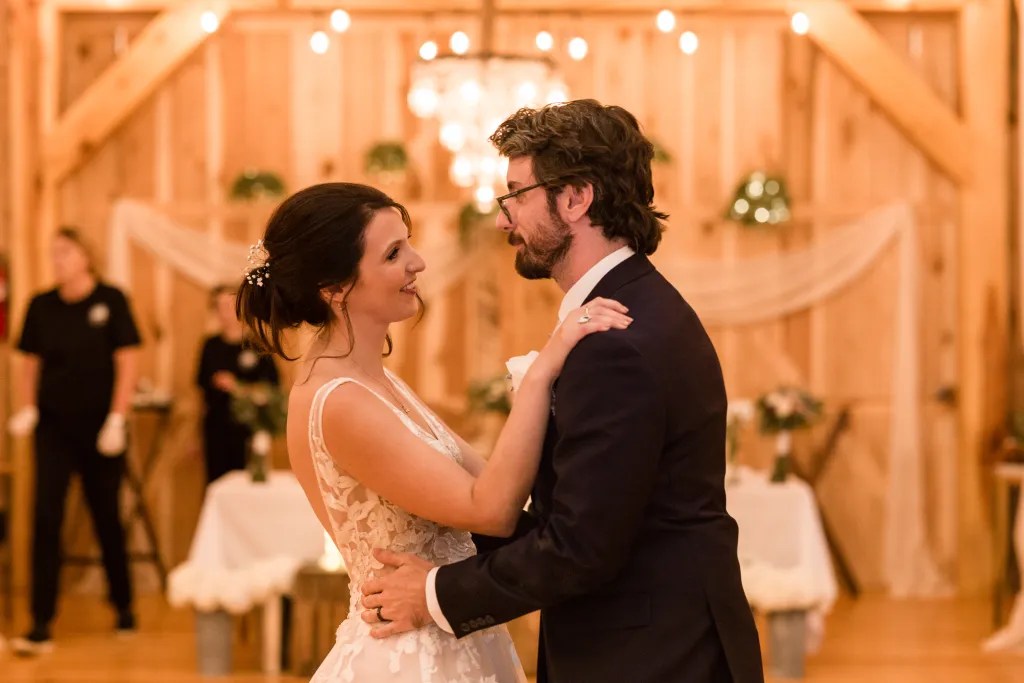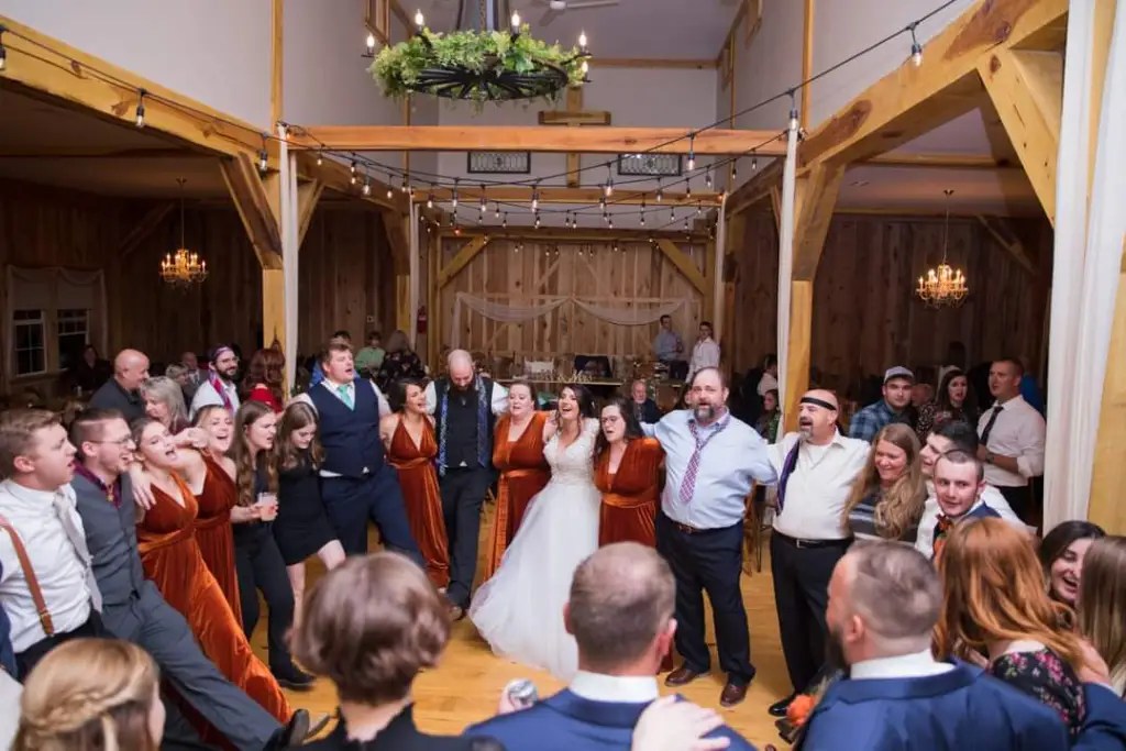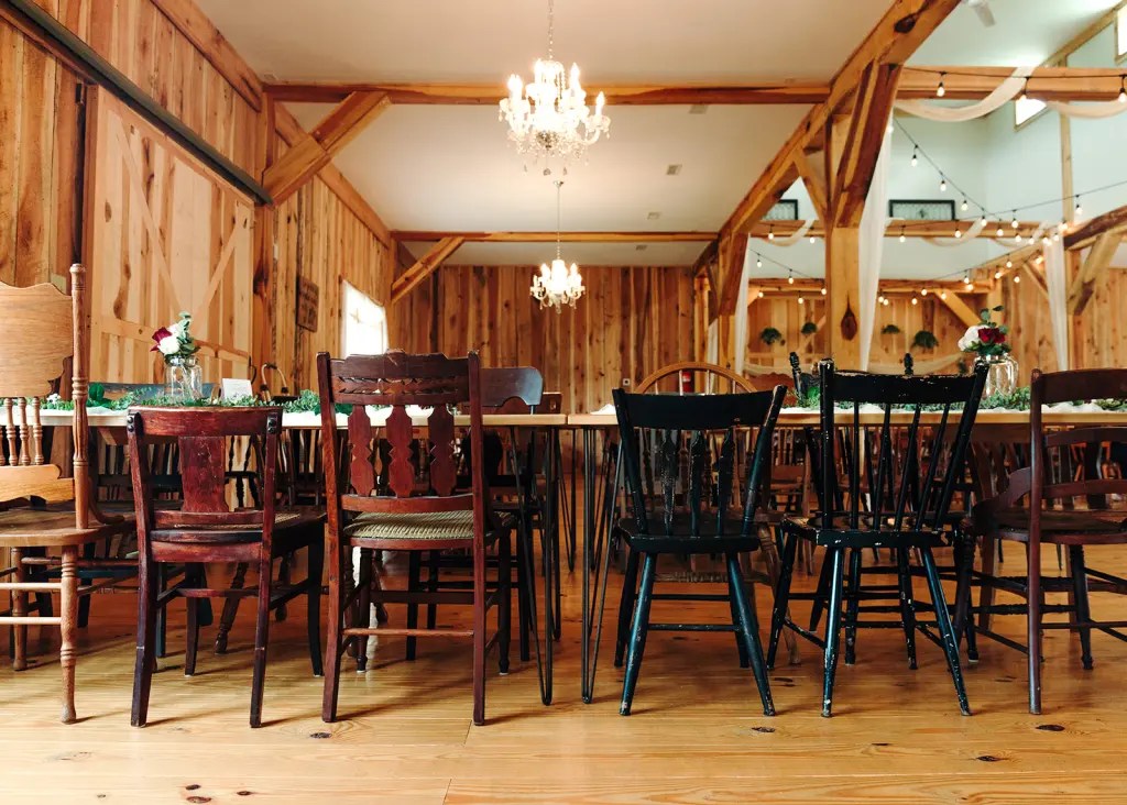 White Pine Grove’s Barn is cozy and open with 20ft ceilings providing plenty of natural light. The wooden tables and chairs, post and beams and wood floors make this rustic room warm and inviting. Above the large barn door at the north end is a handmade wooden cross with two antique stained-glass windows on either side. Including heat and air-conditioning, it is the perfect combination of rustic, classic and comfortable. Inside the barn, you will find guest restrooms, the bride’s room with its own bathroom, a spacious prep kitchen and bar area. We do have an ample sized generator in place so if the power goes out – no worries – the party will go on with AC, heat and all the power you need!